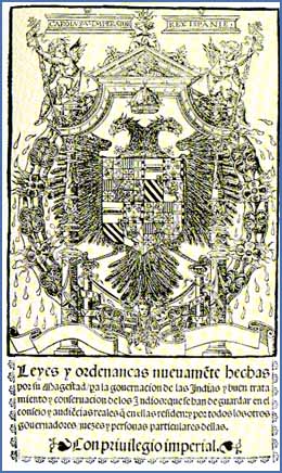 Portada de las Leyes Nuevas de 1542, que pretendían mejorar las condiciones de los indígenas y abolieron las encomiendas.