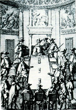 El Consejo de Indias, en un grabado del siglo XVII. El órgano más importante de la administración indiana (América y Filipinas), se formó en 1511 como una sección dentro del Consejo de Castilla, para más tarde, en 1524, conformarse como entidad propia.