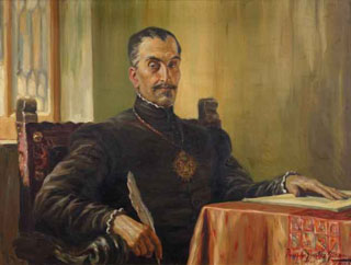 El Inca Garcilaso de la Vega escribiendo los Comentarios Reales, obra de Francisco González Gamarra (1933). Biblioteca del Club Nacional (Lima).