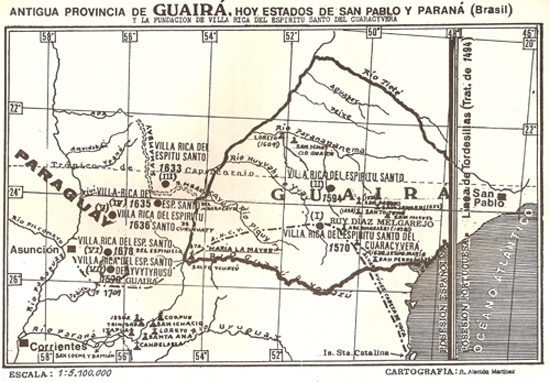 Antigua provincia de Guayrá (hoy estados de San Pablo y Paraná, Brasil), que formó parte de la América española como territorio de la gobernación del Río de la Plata y el Paraguay.