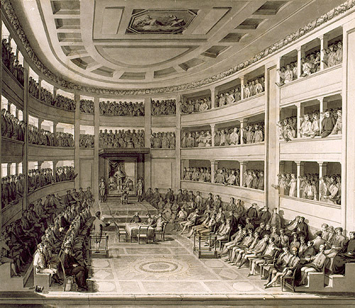 Sesión de las Cortes en la Isla de León. Dibujo de Juan Gálvez (hacia 1810). Museo Lázaro Galdiano (Madrid).