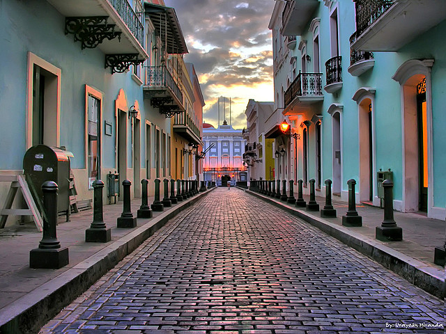 Calle del viejo San Juan, ejemplo típico de arquitectura virreinal de la América española.