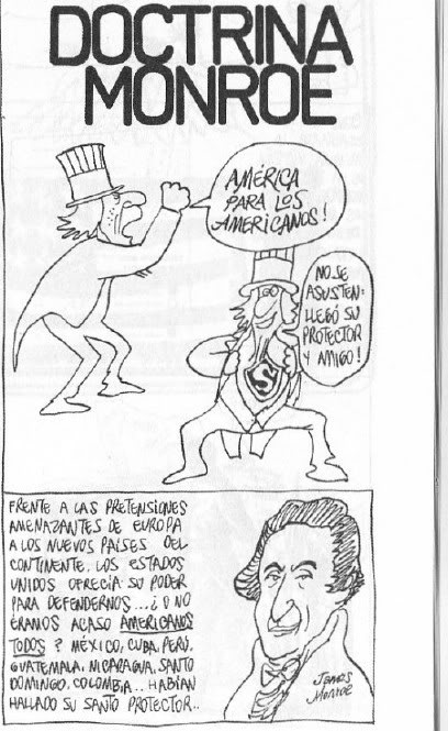 Caricaturización de la doctrina Monroe en el libro de viñetas «Vera Historia del Tío Sam», de Rius (Eduardo del Río García).
